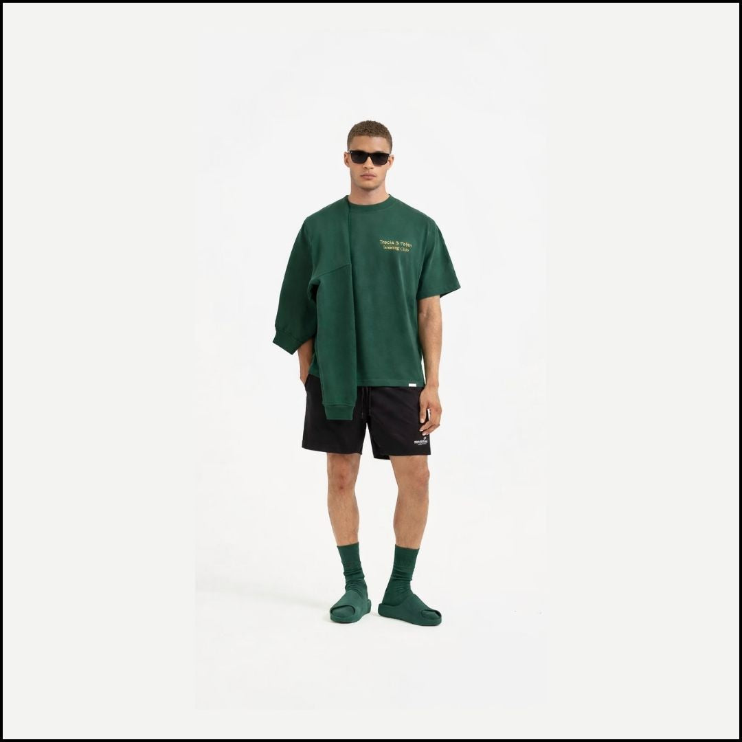 This T-shirt is designed with a relaxed, oversized silhouette. It falls wide and square through the body, intended to feel easy rather than fitted.